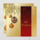 Illustration de Noël noble et élégante : branches dorées d'arbres de Noël avec pendaison de boules de Noël sur un arrière - plan rouge-doré.