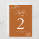 Élégante calligraphie Minimaliste Plante Botanique Feuille Burnt Orange Numéro de table Carte.