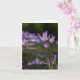Cette carte, magnifiquement conçue, vous permettra de commencer la vie en beauté en vous offrant une photo captivante de crocus d’automne illuminés par le soleil, sertis contre un arrière - plan doux et sombre. Avec une police blanche et cursive à l'avant et un script violet assorti à l'intérieur, cette carte rayonne d'élégance et de chaleur. Parfait pour quiconque se lance dans un nouveau chapitre, que ce soit un changement de carrière, un déménagement ou un voyage personnel. A l'intérieur, un message sincère leur souhaite des possibilités infinies et du bonheur sur leur chemin. Partagez vos encouragements et vos voeux avec cette carte étonnante, conçue pour inspirer et élever.