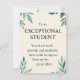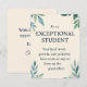 Étudiant exceptionnel est une carte de reconnaissance sincère conçue pour les éducateurs qui souhaitent reconnaître et célébrer les réalisations des étudiants. Avec son design à l'aquarelle botanique douce, doté de feuilles vertes et de fines paillettes dorées sur un fond beige chaud, cette carte transmet un message d'encouragement et de positivité. Sa formulation universelle la rend adaptée aux étudiants de tous âges et de tous horizons. Qu'elle soit utilisée dans les salles de classe, les cérémonies de remise de diplômes ou les notes personnelles de reconnaissance, cette carte élégante aide les enseignants à exprimer leur gratitude et à inspirer une croissance continue.