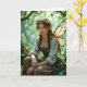 A sweet whimsical thinking about you card for a friend or family member, featuring an elven fairy in vintage dress sitting on a tree branch.