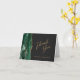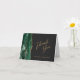Le bord gauche de cette élégante carte de remerciement mariage à plat présente une aquarelle vert émeraude ornée d'une fausse parties scintillant dorée. Le texte est en écriture dorée et sans serif polices sur un arrière - plan noir en ardoise foncée.