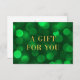 Carte de certificat cadeau avec les mots "A Gift For You" en fausse feuille d'or contre un motif vert émeraude feux arrière - plan sur le devant. Personnalisez cette carte avec vos détails en remplaçant le texte de l'espace réservé. Pour plus d'options comme changer la police, la taille/la couleur du texte ou l'espacement entre les lettres, cliquez sur le bouton "Personnaliser". *Veuillez noter que le filigrane Zazzle qui apparaît dans l'aperçu du zoom n'apparaîtra PAS sur le produit imprimé final. © Bois de rose et agrumes