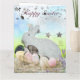 Célébrez la joie de Pâques avec cette carte de vœux de Pâques fantaisiste Boganhues. Le design présente un fond printanier pastel doux avec un lapin de Pâques charmant à la texture scintillante, entouré d'un nid douillet d'œufs décoratifs à motifs écossais, à pois, de dentelle et de couleurs pastel. Des étoiles argentées scintillantes et un message festif "Joyeuses Pâques" ajoutent une touche d'éclat et de magie, ce qui en fait un élément idéal pour envoyer des vœux chaleureux de vacances. Des accents de fleurs de lavande et des détails de foin apportent une sensation naturelle et rustique qui se marie parfaitement avec le thème ludique de Pâques.