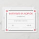 Certificat d'adoption d'animal de compagnie mignon en blanc avec cadre empreinte de patte. Certificat d'adoption rose et blanc imprimé avec de mignons empreintes de pattes. Certificat d'adoption blanc et rose avec polices et pattes mignonnes.