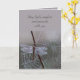 En Sympathie profonde avec belle libellule sur toile d'araignée couverte de rosée avec un verset chrétien encourageant et réconfortant