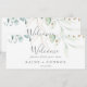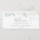 Cet en-tête de bienvenue spacieux et verdoyant est parfait pour un mariage moderne. L'élégant design botanique présente des eucalyptus aquarellés clairs et aquarellés, agrémentés de feuilles de parties scintillant en or blanc. La carte s'imprime à l'avant et à l'arrière (double face). Veuillez consulter la collection pour connaître les cartes de classement des sièges du numéro de table de coordination.