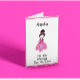 Encouragement du cancer du sein carte personnalisable "Elle était plus forte qu'elle ne le connaissait" Carte d'encouragement et d'élévation avec une fille portant une jupe remplie de rubans roses