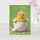 Joli poussin jaune moelleux en coquille d'oeuf. Le texte est modifiable.