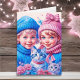 Carte Enfants vintages et chatons Noël