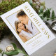 Save The Date Black Gold Stylish Script Modern Wedding Cartes dispose d'un arrière - plan blanc avec votre photo personnalisée. Personnalisez avec votre texte en modifiant le texte dans les zones de texte fournies. Conçu pour vous par ©Evco Studio www.zazzle.com/store/evcostudio