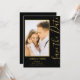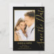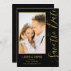 Save The Date Black Gold Stylish Script Modern Wedding Cartes dispose d'un arrière - plan noir avec votre photo personnalisée. Personnalisez avec votre texte en modifiant le texte dans les zones de texte fournies. Conçu pour vous par ©Evco Studio www.zazzle.com/store/evcostudio