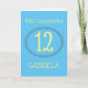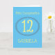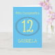 Carte d'anniversaire bilingue bleu et jaune en espagnol parfaite pour tous les âges. Arrière - plan Sky Blue avec un beau grand Jaune 12 pour un enfant de douze ans. Vous pouvez le modifier à n'importe quel âge et vous pouvez également le modifier en cliquant sur Personnaliser. À l'intérieur de cette carte en deux langues dit Joyeux Anniversaire, et vous pouvez changer cela en un autre message de votre choix. Merci de soutenir la boutique Zazzle de WindyDesign !