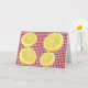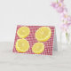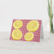 La carte de voeux d'encouragement parfaite pour faire savoir aux gens que vous pensez à eux. Parfois, la vie vous donne des citrons. Accrochez-vous et faites de la limonade. Citrons tranchés sur le en vichy rouge.
