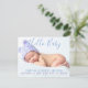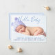 Annoncez l'arrivée de votre paquet spécial de joie avec ce grand "Hello Baby" en écriture bleue et typographie violette avec arrière - plan bleu doux. Ajoutez la photo, le nom, les statistiques sur le devant et incluez un message sur le dos ou laissez vide et écrivez un message personnel plus tard. Non spécifique au genre. Belles couleurs pour garçon ou fille. Les couleurs de police peuvent être modifiées - allez à la personnaliser plus loin. S'il vous plaît envoyez-moi un courriel si vous avez besoin d'aide pour rendre ceci plus propre ou pour aider à adapter votre photo. designsbykatz@gmail.com