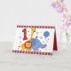 Soyez prêt pour avoir un temps sauvage avec cette conception adorable de safari comportant un éléphant mignon, la girafe, le lion et le toucan et un grand numéro rouge un. Sur le T-shirts de bébé et d'enfants, les invitations faites sur commande, les classeurs de souvenir de timbres-poste, le magnet, les autocollants, les cartes de voeux et plus !