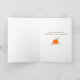 Un mignon petit fantôme sourit joyeusement en flottant à travers un arrière - plan orange sherbet, tenant un bouquet de fleurs d'automne comme un beau jack-o-lanterne équilibre au-dessus de la tête du fantôme. Illustration originale de Noël Snow.