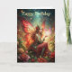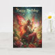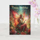Une jolie fée en rouge dans un jardin fleuri. Convient pour une carte d'anniversaire pour n'importe qui. Vous pouvez modifier le texte