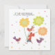 Souris de tournesol et d'oiseau. Texte à l'avant "Joyeux anniversaire" Texte à l'arrière "félicitations chaleureuses et jolies aujourd'hui"