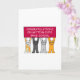 Four cartoon cats of various colours holding up a cerise colored banner above their heads. Les Banner says's Congratulations on g accepted into school'.