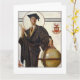 L'image d'un diplômé en casquette et en robe debout à côté d'un globe est "Graduate" fait en 1920 par l'artiste américain Joseph Christian Leyendecker (1874-1951). Le verset à l'intérieur est "Félicitations diplômés. Vous avez maintenant le droit d'agir comme un faux fil." C'est notre série des Beaux-Arts n° 30.