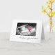 Une carte de félicitations de remise de diplômes avec une photo en noir et blanc d'une casquette de remise de diplômes et un diplôme attaché avec un ruban rose.