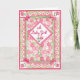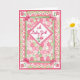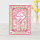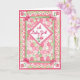 Une jolie carte de félicitations pour une petite fille avec un motif patchwork en blanc rose et vert, peint à la main par Judy Adamson. L'accueil intérieur, que vous pouvez customiser, est "Félicitations !".