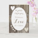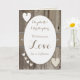 Personnalisez ce fond en bois sombre rustique, avec des coeurs blancs et beige, carte de Jour de Mariage pour la Mariée et le Marié, avec leurs noms.