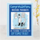 Pour un opticien ou un optométriste qui a terminé sa formation médicale. L'illustration de Drôle Drôle Cartoon montre un optométriste et le patient de l'opticien avec une carte murale de test oculaire. Carte de félicitations pour un Optométriste ou Opticien nouvellement diplômé. Drôle dessin animé. Grande carte.