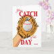 Félicitations pour votre Catch of the Day, carte de voeux papier avec un thème sportif de base-ball. Le design de la couverture est l'illustration d'un baseball à l'intérieur d'un gant de baseball et le joueur a aidé à gagner la partie. Design audacieux et graphique. Ajoutez un message personnel à l'intérieur comme vous le souhaitez. Copyright © Shoaff Ballanger Studios.