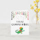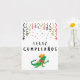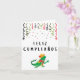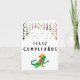 Carte d'anniversaire espagnole (tarjeta de cumpleaños) avec message d'anniversaire en espagnol (Feliz Cumpleaños, heureux anniversaire en espagnol) et illustration traditionnelle mexicaine de l'iguane en sombrero et poncho. Inclut le message d'anniversaire dans la carte, 'Feliz Cumpleaños'.