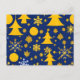 Cette carte de Noël étincelle avec une mer de flocons de neige dorés et d'arbres de Noël, le tout sur un fond bleu royal, évoquant la splendeur d'un Noël ukrainien traditionnel avec une touche artistique moderne.