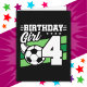 Ce design de fête d'anniversaire de football est parfait pour une fête d'anniversaire de soccer de 4 ans pour une fille de 4 ans pour célébrer leur 4e anniversaire! Idéal pour les enfants qui aiment jouer au football, regarder le football ou les futurs footballeurs stars ! Dispose d'un ballon de football sur un terrain de football graphique avec le numéro 4 pour le 4ème anniversaire d'une fille.
