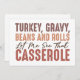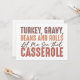 Ce design de Thanksgiving amusant et festif présente la phrase ludique "Dinde, sauce, haricots et petits pains, laissez-moi voir cette casserole" dans une mise en page audacieuse et accrocheuse. Le texte est disposé dans un mélange de polices blockagées et élégantes, créant un effet visuel dynamique et engageant. La palette de couleurs comprend des tons chauds et terreux comme les bruns, les oranges et les rouges, reflétant parfaitement l'atmosphère chaleureuse et réconfortante d'un festin de Thanksgiving. La texture dégradée du texte ajoute une touche rustique et vintage au design, ce qui le rend idéal pour les fêtes.
