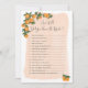 QUI CONNAÎT LE MIEUX LA MARIÉE ? Vibrant jeu de douche nuptiale avec illustration originale peinte à la main d'oranges d'agrumes frais et feuillage vert