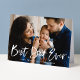 Une jolie carte de voeux fête des pères moderne avec votre photo de famille préférée sur le devant avec "Best Dad Ever" dans une superposition blanche et lettrée. Personnalisez l'avant de la carte de fête des pères en ajoutant un message d'accueil personnalisé et votre nom. L'intérieur de la carte comporte un motif plaid bleu et blanc sur le dessus, avec votre message personnalisé affiché ci-dessous.