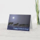 Une nuit d'hiver froide et illuminée par la lune; un sac à loup sur le rôti. Le texte "Bonne Fête des pères !" apparaît également.