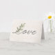 LOVE texte dans une police de script élégante avec feuilles verts sur texture neutre douce arrière - plan pour les jeunes mariés