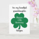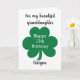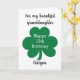 Une carte personnalisée de 13e anniversaire de la Saint Patrick avec une feuille de verglas sur le devant. Vous pourrez facilement personnaliser l'avant avec les détails du récipiendaire de l'anniversaire. Le message de la carte intérieure peut également être personnalisé. Cette carte d'anniversaire personnalisée de St. Patrick ferait un souvenir unique pour votre petite-fille, petit-fils et plus encore.