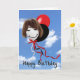 Le visage souriant de la fille avec les cheveux sur un ballon d'anniversaire blanc et arrière - plan du ciel.