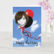 Le visage souriant de la fille avec les cheveux sur un ballon d'anniversaire blanc et arrière - plan du ciel. Arrière - plan peut être modifié.