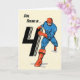 Votre fils sera ravi une fois qu'il aura reçu cette carte de vous pour son 4e anniversaire. Rendre la fête plus heureuse pour lui en partageant cette carte qui montre un super-héros en bleu et rouge sur le devant.
