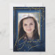 Un arrière - plan d'aquarelle dans les tons du bleu royal à la marine est surmonté d'une abstraite de lignes d'or fin et d'effets lumineux scintillants pour créer cette belle invitation à la graduation. La carte comporte également une calligraphie élégante et un cadre en dégradé pour tenir votre photo. Ajoutez facilement vos propres détails personnels à l'aide du modèle fourni. Recherchez ID867 pour voir d'autres pièces et choix de couleurs pour cet ensemble.