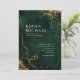 Un arrière - plan d'aquarelle dans les tons vert émeraude est surmonté d'une abstraite de lignes dorées fines et d'effets lumineux scintillants pour créer les pièces de cette belle suite mariage. La carte "Invitation" mariage présentée ici contient également du texte non centré et une bordure en maille d'or fin au verso. Ajoutez facilement vos propres noms, date mariage et détails de l'événement à l'aide du modèle fourni. Recherchez ID867 pour voir d'autres pièces et choix de couleurs pour cet ensemble.