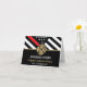 This design features a firemen's flag with black and white stripes, and a thin red line stripe as well. "Congratulations" and a fireman's badge sits above the name of the graduating firefighter. This design also works great for retiring firefighters, lieutenants, or chiefs. Celebrate in style!