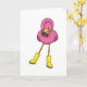 Carte Flamant rose à la pluie avec bottes en caoutchouc