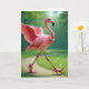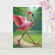 Carte Flamant rose d'anniversaire portant talons et perl