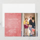 Carte photo de vacances Whimsical, mais simple, Snowflake Swirls avec un éventail de fleurs tourbillonnantes et des flocons de neige sur un arrière - plan d'aquarelle rouge. Cette élégante carte à plat photo est facile à customiser avec une photo et votre accueil de Noël personnalisé. Cliquez sur "customiser" pour trouver des options de personnalisation supplémentaires. Photographie © Storytree Studios, Stanford, CA