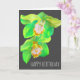 Art floral moderne de fleurs d'aquarelle par Sacha Grossel d'une fleur d'orchidées avec des motifs de couleur citron et citron vert. Art moderne et coloré avec accueil d'anniversaire