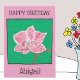 Dites Joyeux Anniversaire avec cette jolie carte représentant un dessin original d'une fleur d'orchidée rose sur un arrière - plan vert et rose. C'est simple et joli. Vous pouvez personnaliser la salutation et le nom sur le devant et ajouter vos propres mots à l'intérieur. L'oeuvre est originale, et disponible uniquement dans l'Art d'être Beth.
